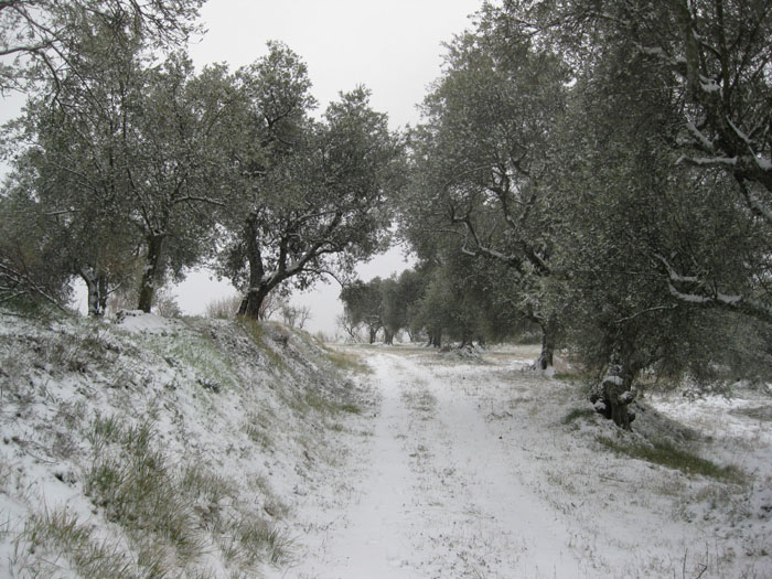 Ook al zitten we op 800 meter aan de voet van de hoge Pyreneeën, het sneeuwt hier maar zelden. Overdag vriest het eigenlijk nooit. Dus als het al een keer sneeuwt, dan is het ´s nachts, uit een verdwaalde wolk uit het hooggebergte.
